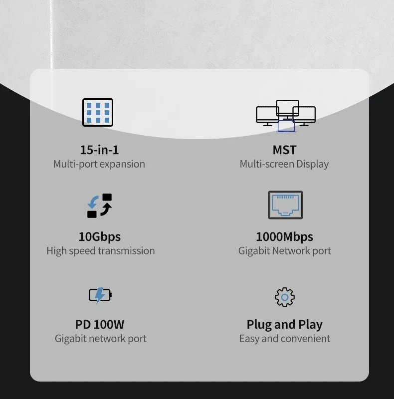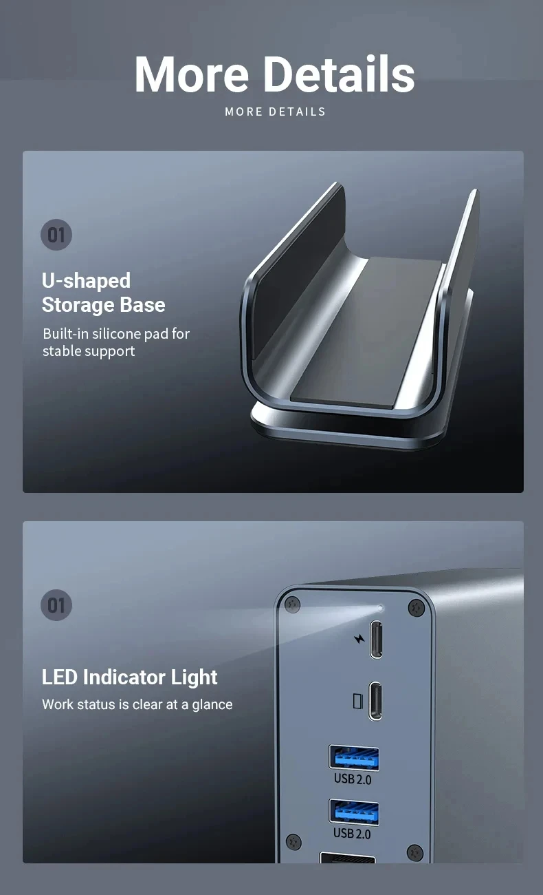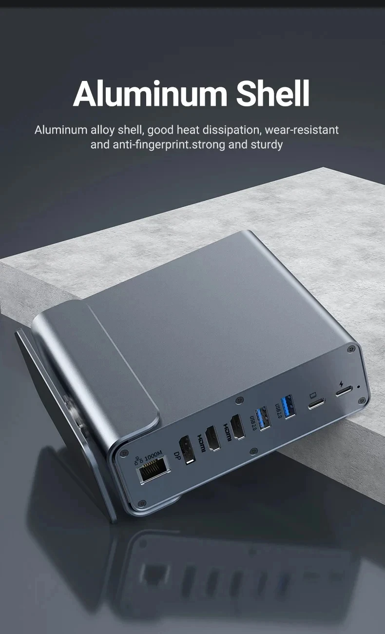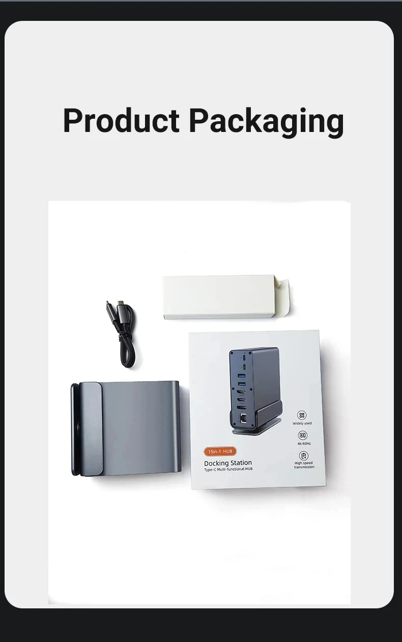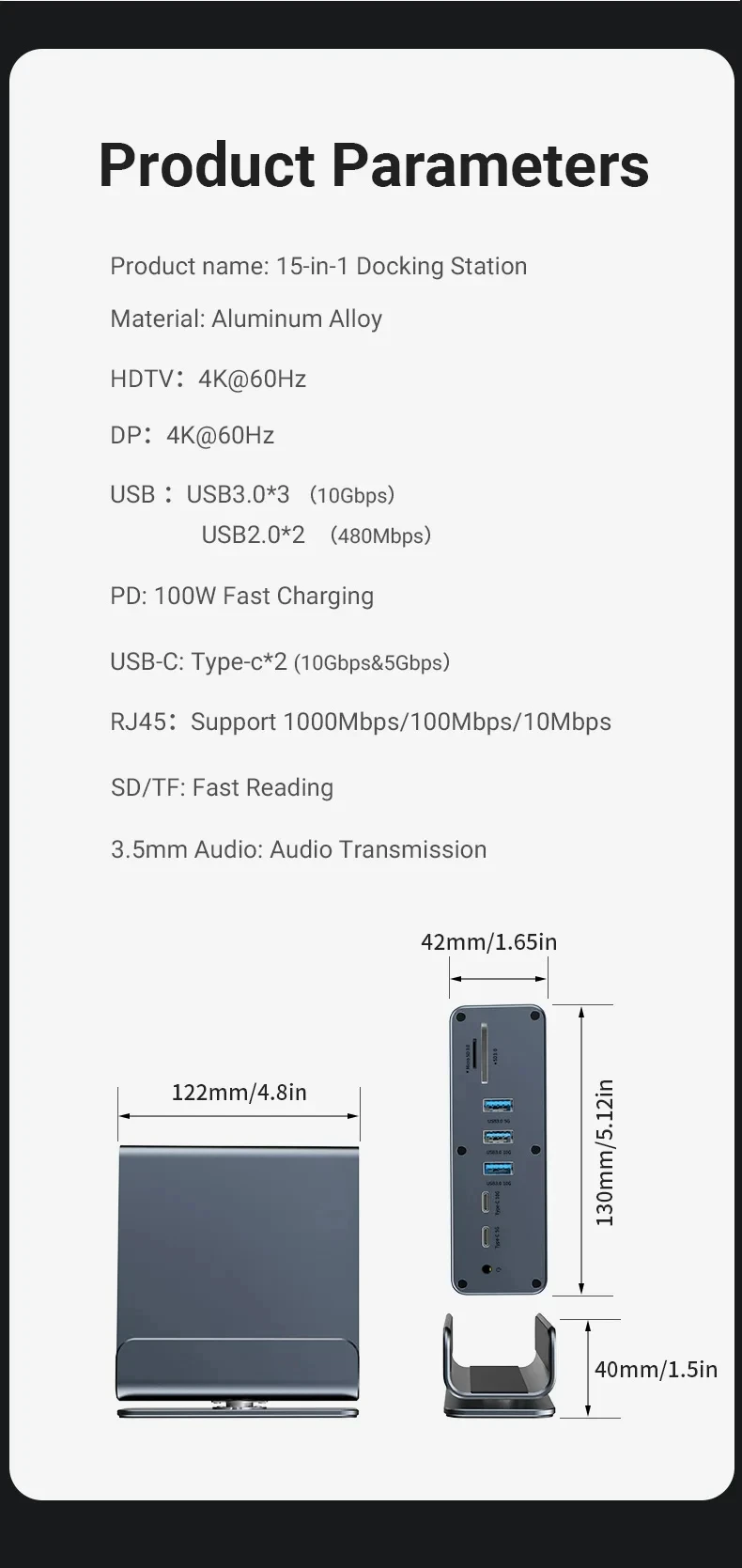 15 in 1 Hub Type-C Docking Station 4K@60Hz HDMI DisplayPort USB A RJ45 SD TF Audio 3.5mm Port Adapter for Laptop PC