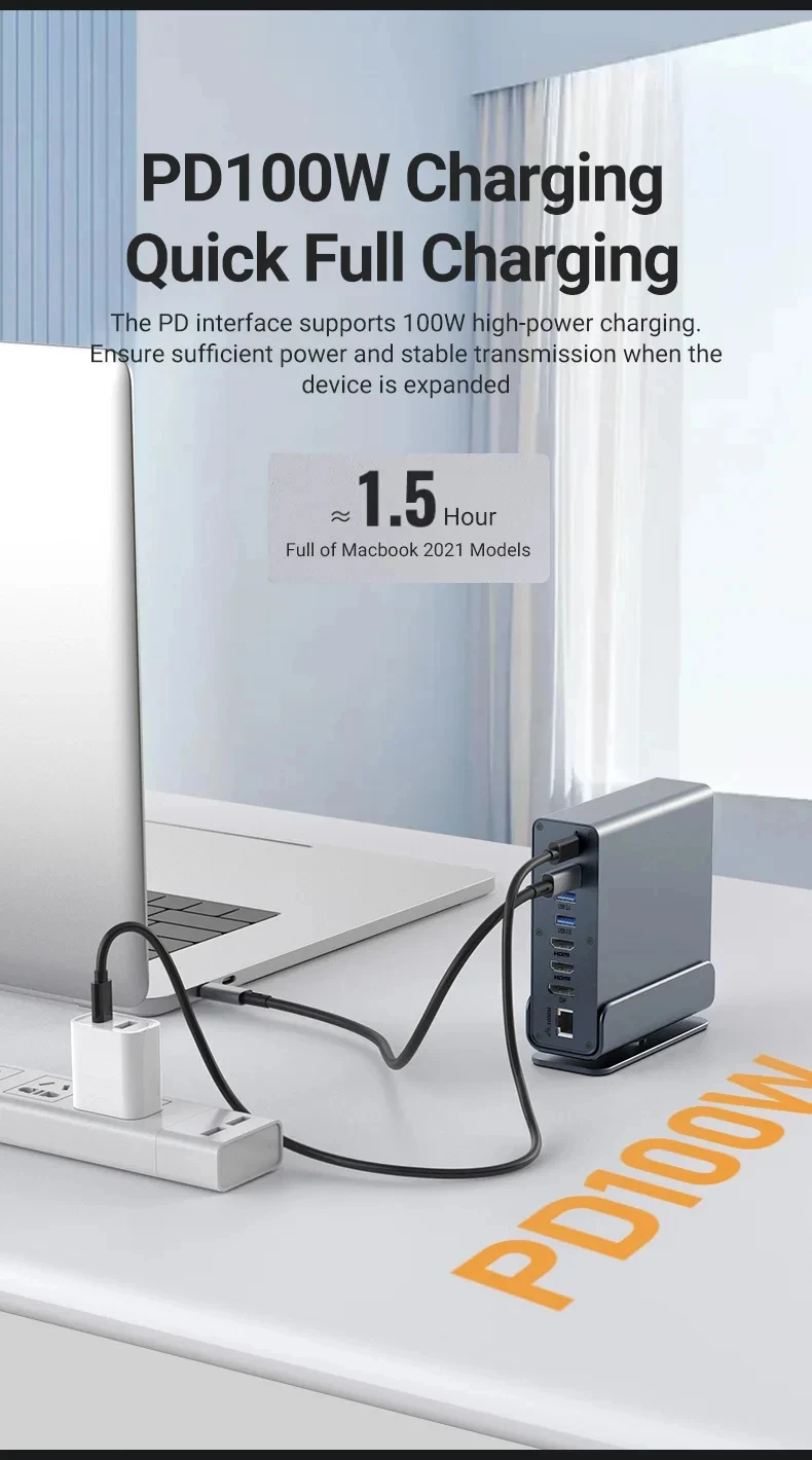 Material:Aluminum Alloy Color:Sliver Size:12.2x4.2x13cm PD:100W Fast Charging Ports:15 Interface Type:USB Type-C..