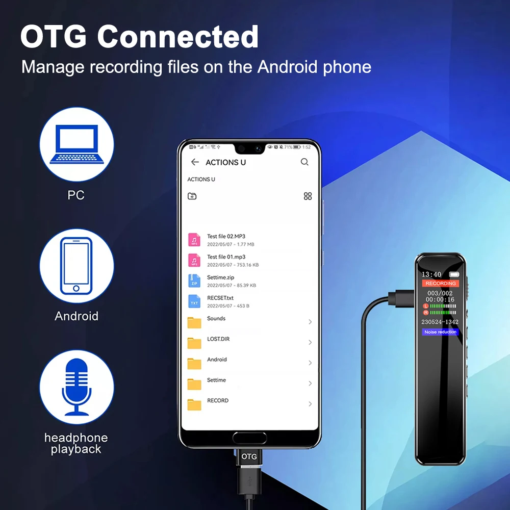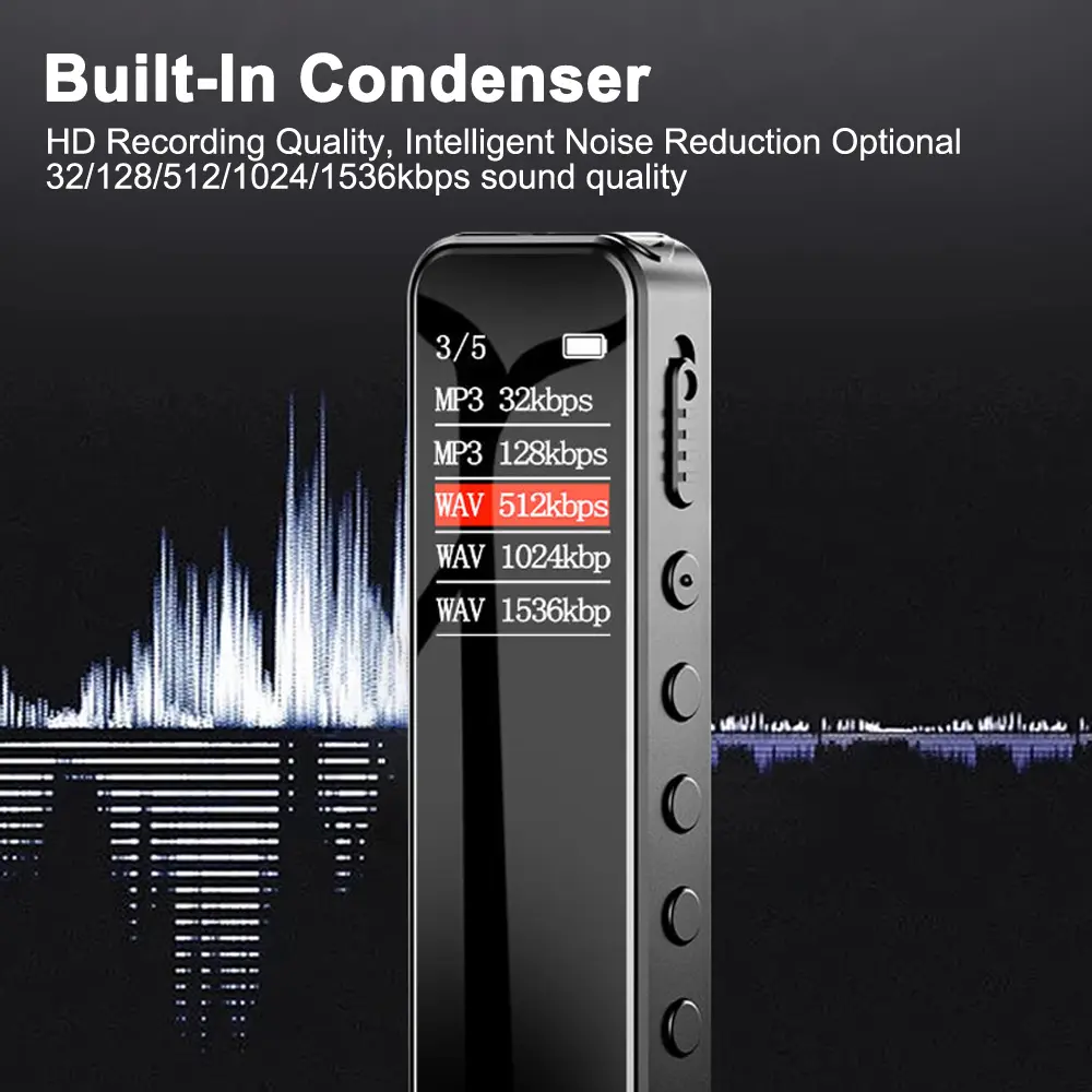 Digital Audio Voice-Activated Recorder With Type-C Interface, Long Recording Time, One-Button Recording.