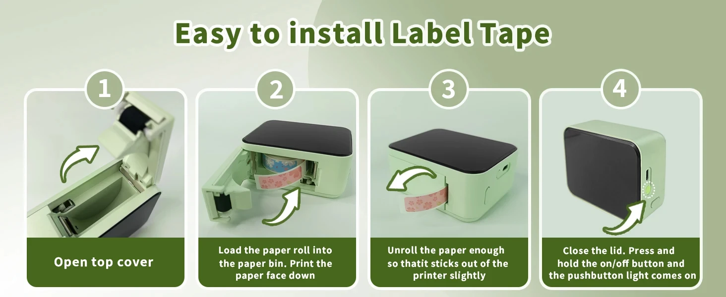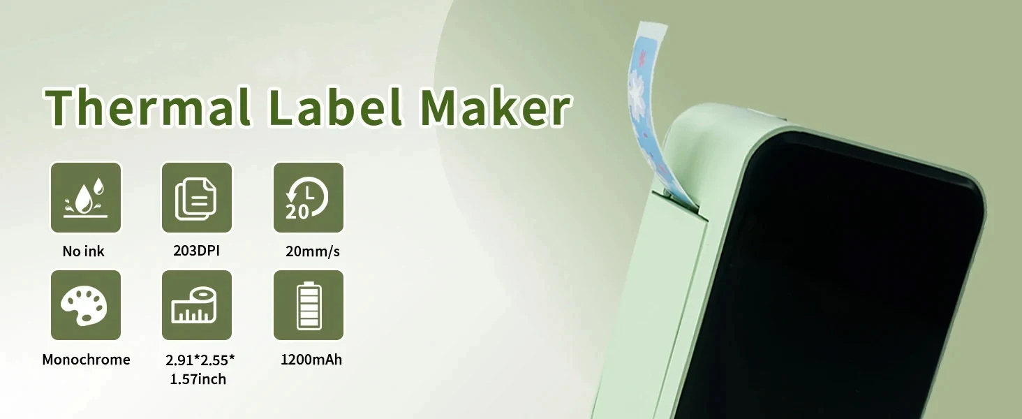 Consumable Type:Label Paper Max. Resolution:203dpi Signal Connection Type:Bluetooth Print Speed:20ppm Paper Feed Mode:Manual Max Paper Size:15mm Type:Thermal Printer Interface Type:Bluetooth Material:Plastic Color:Beige,Light-green Size:8.9x7.3x3.9cm..